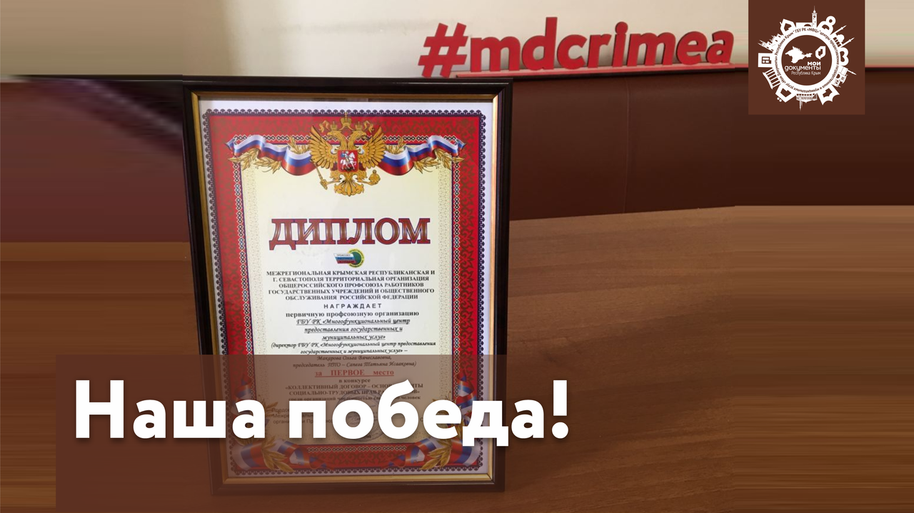 Мы рады сообщить, что ГБУ РК "МФЦ" одержало победу в конкурсе "Коллективный договор - основа защиты социально-трудовых прав работников" среди организаций численностью свыше 100 человек.
