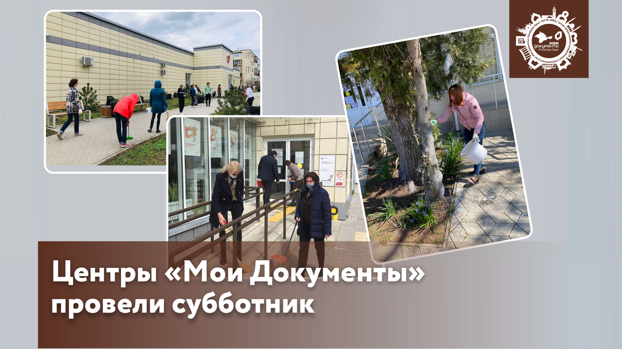 Так, центры «Мои Документы» г. Бахчисарай, г. Белогорск, г. Джанкой, с. Доброе, г. Евпатория, пгт. Ленино, пгт. Нижнегорский, г. Саки, пгт. Черноморское и г. Ялта уже провели субботники. Наши сотрудники потрудились и навели порядок как в самих центрах, так и на прилегающих к ним территориях - копали, сажали, красили, выметали.