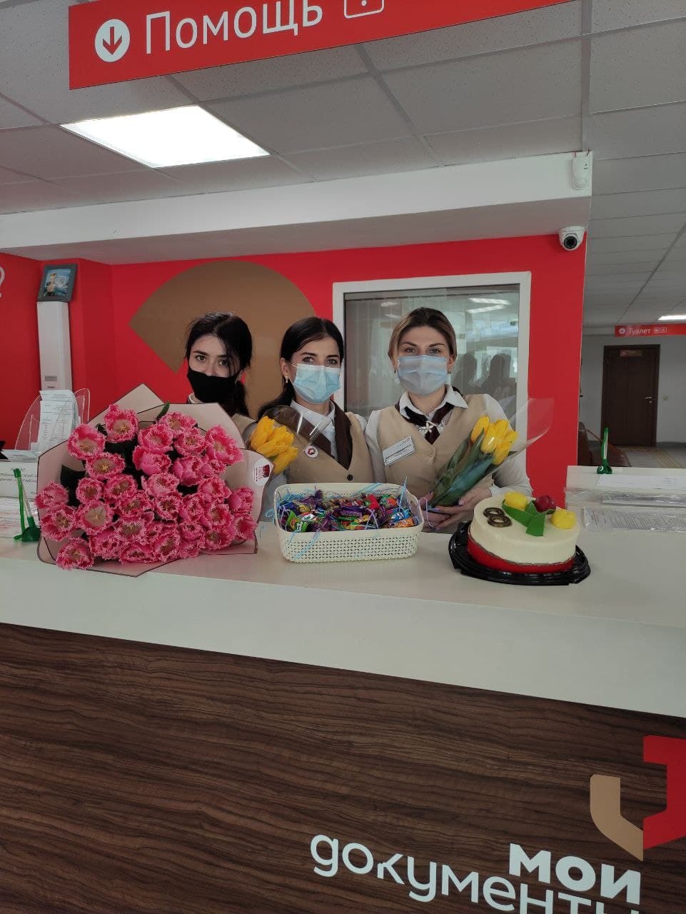 В преддверии праздника сотрудники центров "Мои Документы" решили поздравить женщин с первым праздником весны - Международным женским днем.
