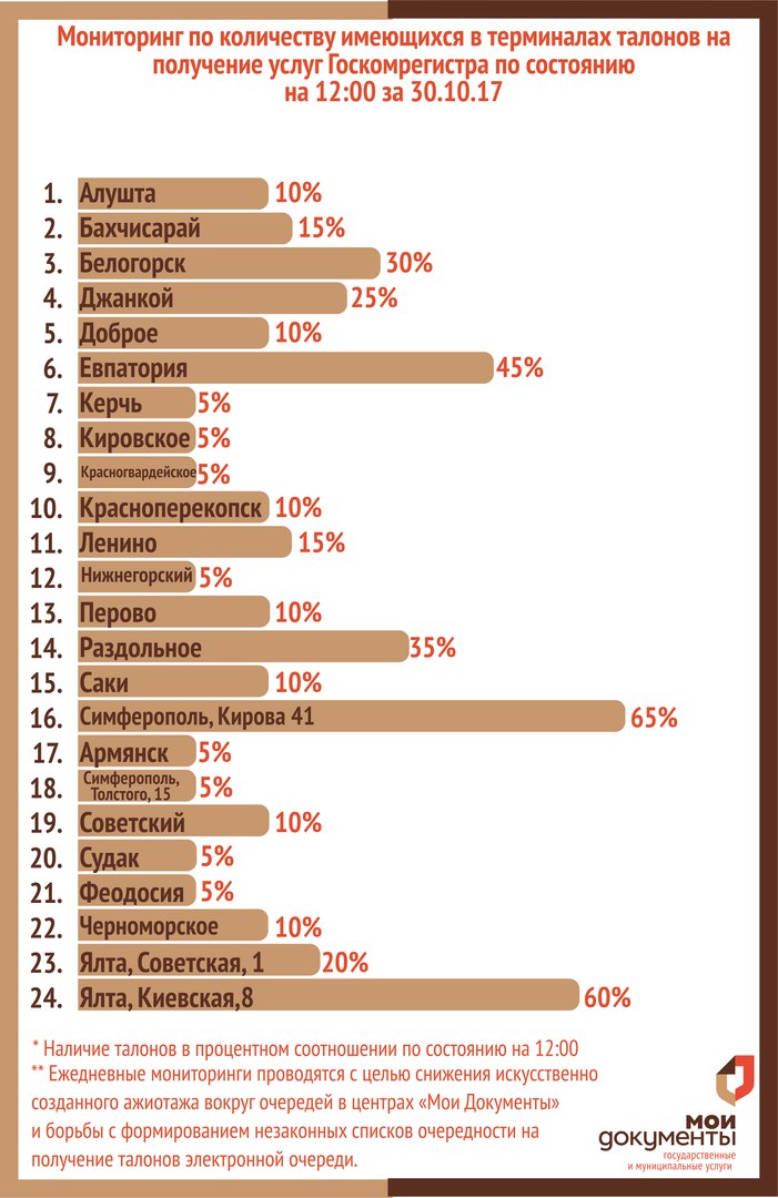 Мониторинг по количеству имеющихся в терминалах талонов на получение услуг Госкомрегистра по состоянию на 12:00 за 30.10.17