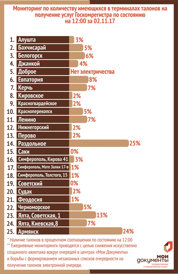 Мониторинг по количеству имеющихся в терминалах талонов на получение услуг Госкомрегистра по состоянию на 12:00 за 02.11.17