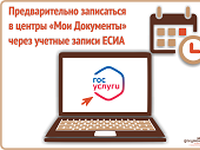 Обращаем ваше внимание на то, что предварительная запись в центры «Мои Документы» осуществляется только через учетные записи ЕСИА. Вход в личный кабинет, ранее зарегистрированный по электронному адресу, не доступен.